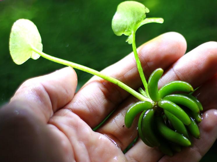 The Banana Plant is quite unusual and is sure to be one of the most compelling plants in any aquascape. It is a rosette plant that is named for its large and highly unique roots, which are banana-shaped and remain partially visible above the substrate.